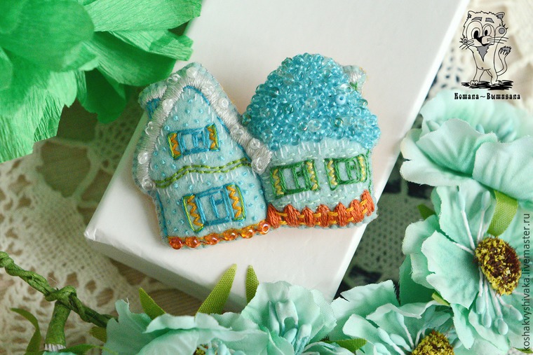 Trang trí cài áo ngôi nhà từ vải dạ