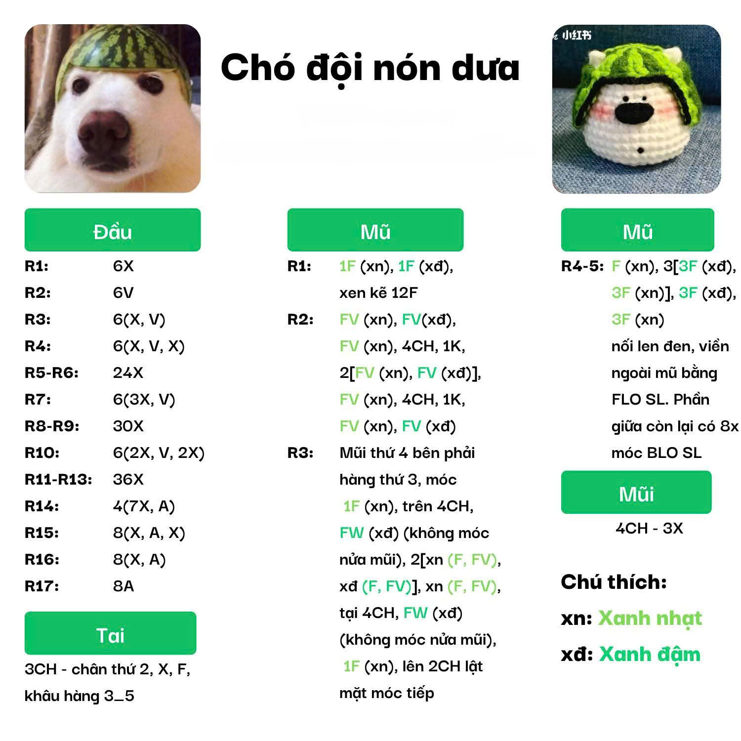 Chart móc chó đội nón dưa (sưu tầm)