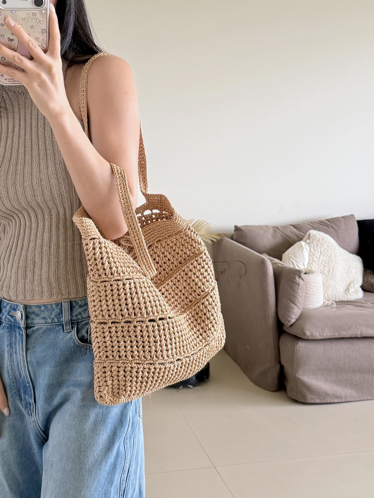 Móc túi tote sợi cọ sưu tầm