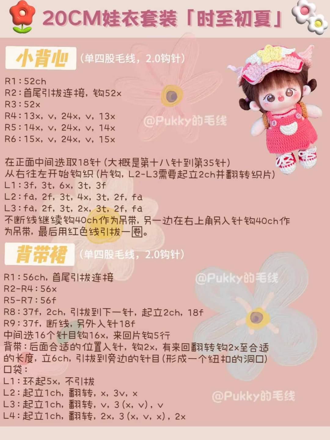 Đầm yếm hồng doll 20cm – chart móc sưu tầm