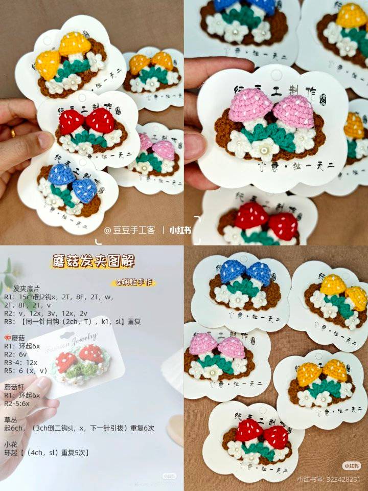 Kẹp tóc cây nấm và hoa – sưu tầm