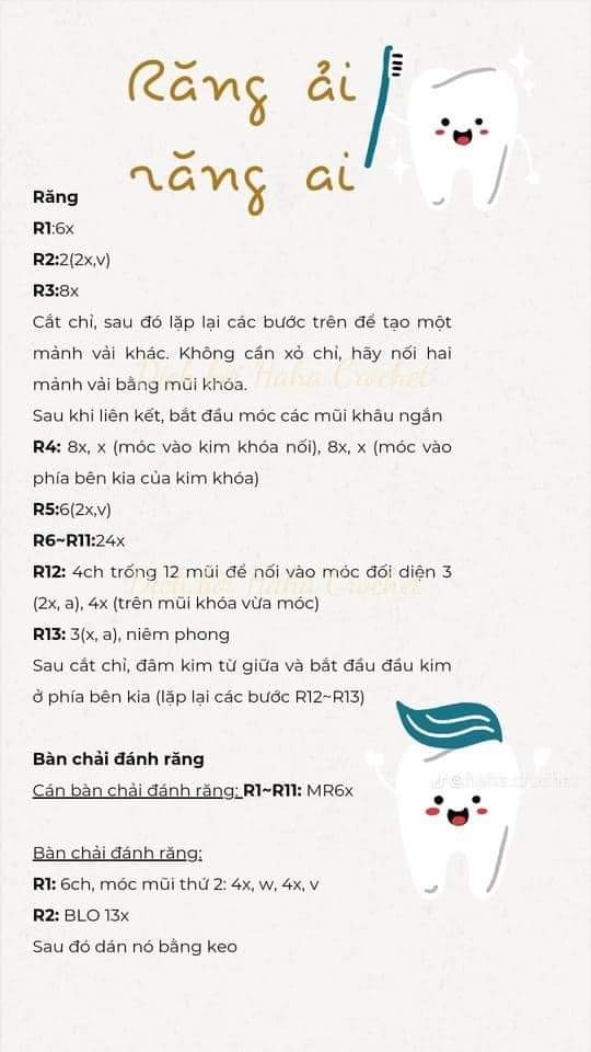 Răng & bàn chải – chart móc len sưu tầm