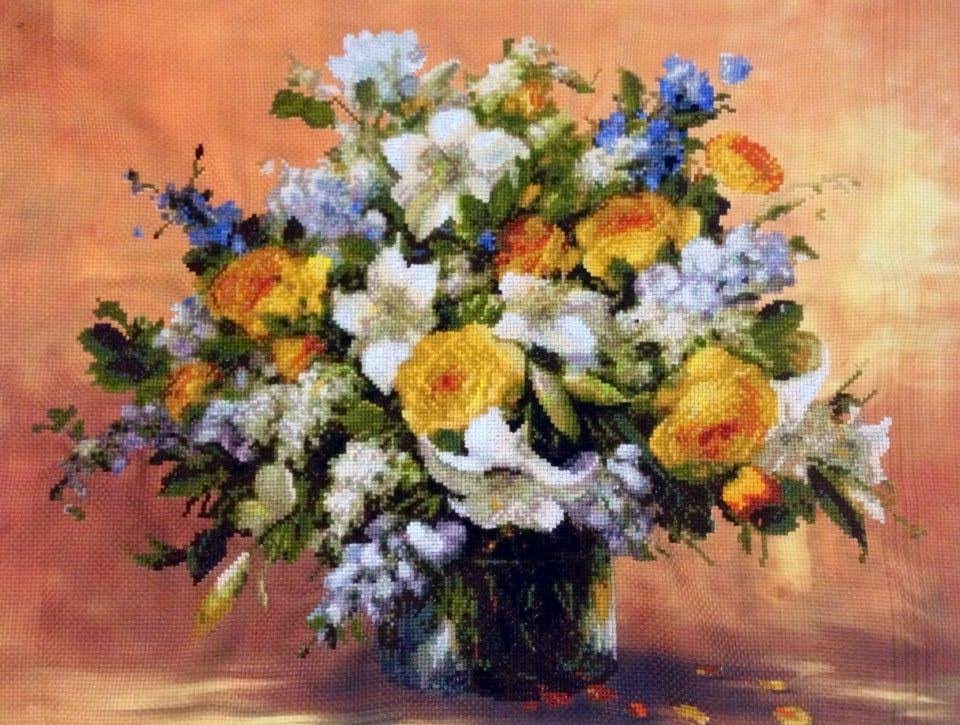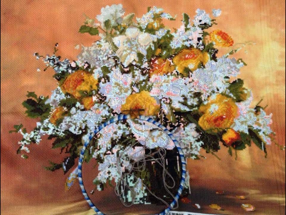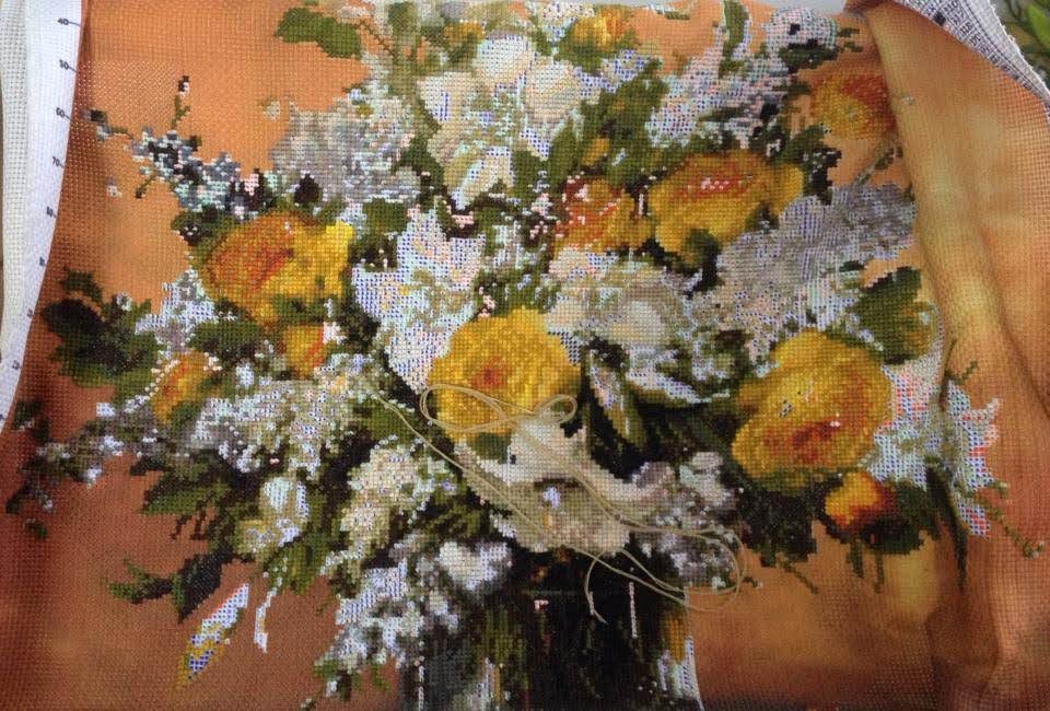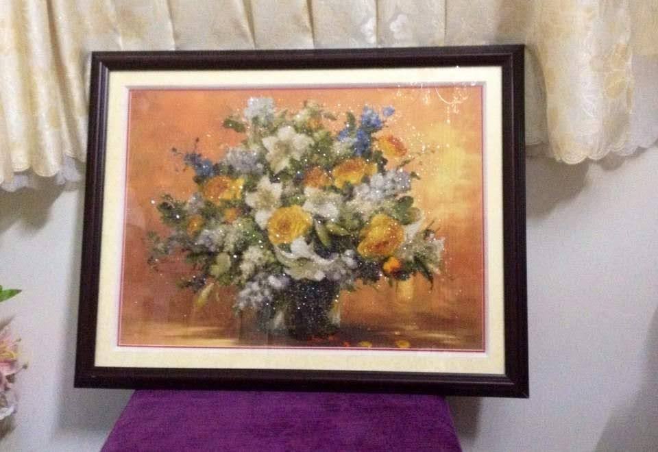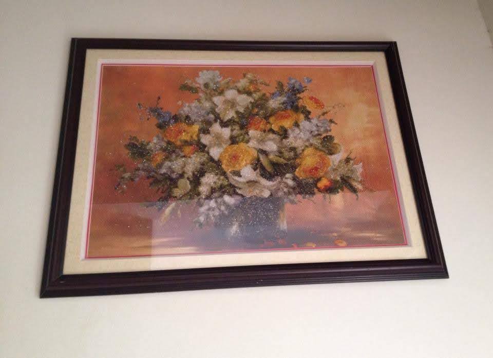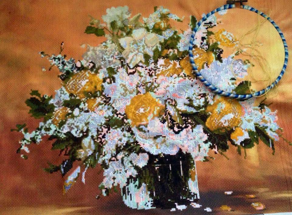 Thêu bức tranh bình hoa