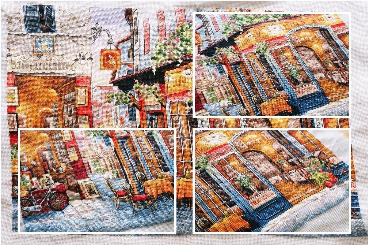 Tranh thêu chữ thập tiệm cafe Dimensions Needlecrafts Counted Cross Stitch, European Bistro